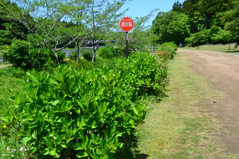 アジサイロードを通ってお散歩開始です。アジサイはまだ咲いていませんね・・・。