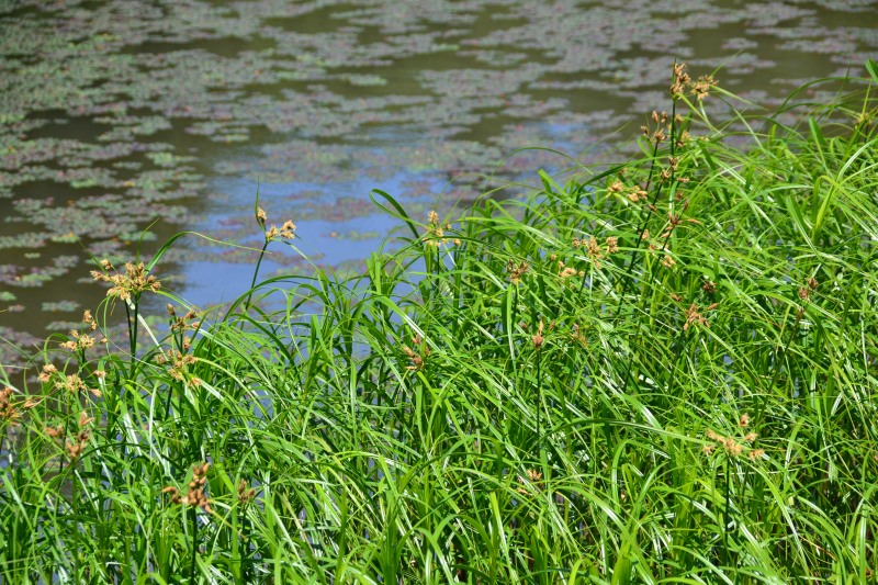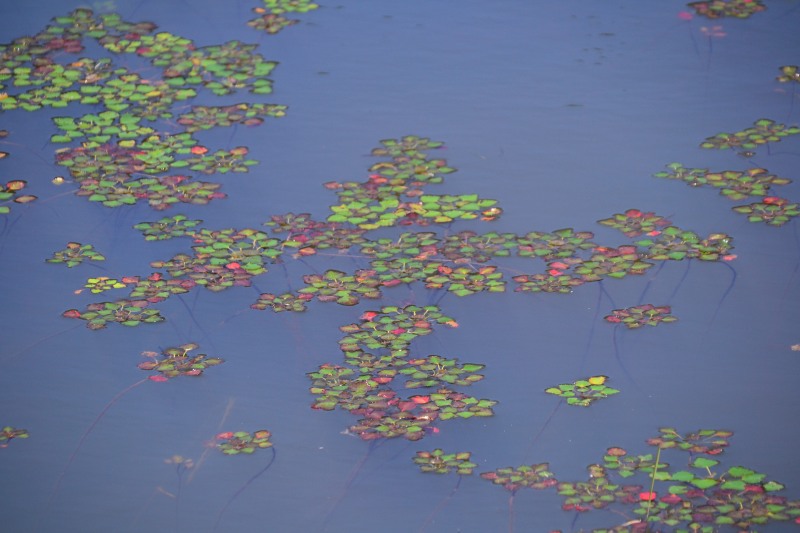道の左脇には、池があります。色々な花も咲いています。整備された道で、歩き