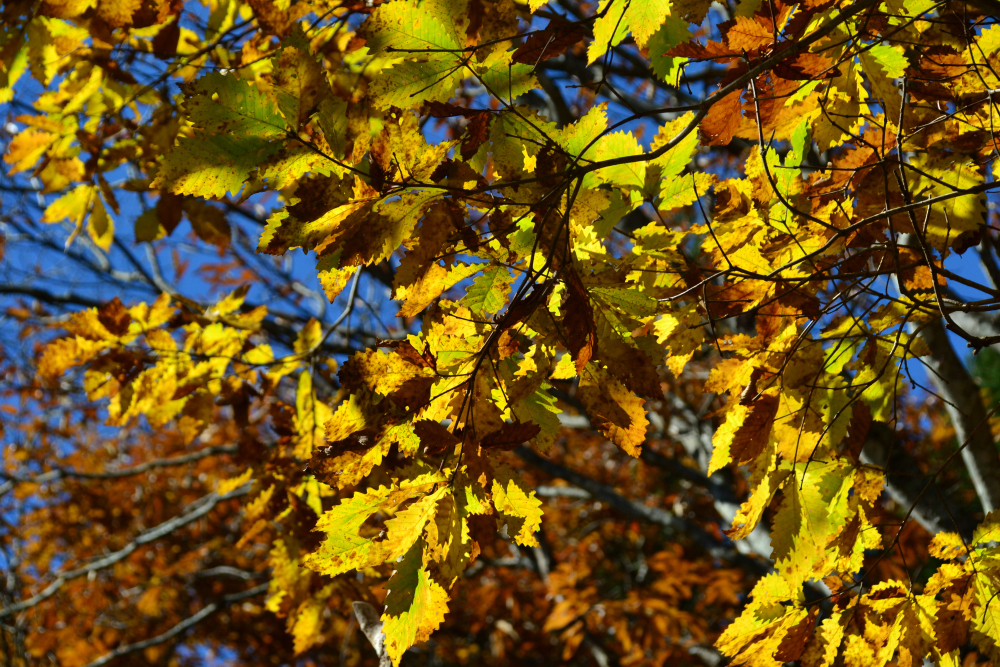 枯れた葉っぱが、陽射しを浴びて、美しく見えます。