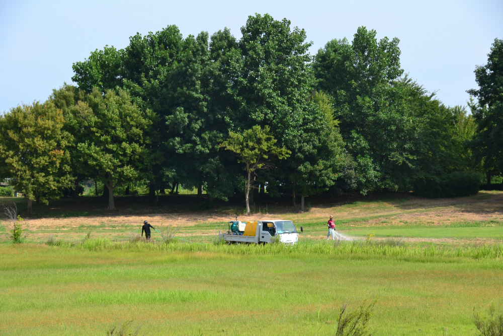 子供広場には、誰もいません。暑い日ですから、子供たちも熱中症になって