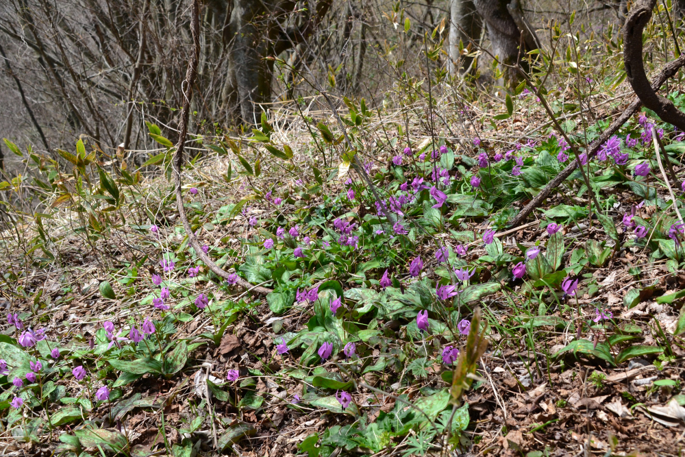 徐々に道の脇や斜面に、カタクリを多く見ることが出来るようになりました。
