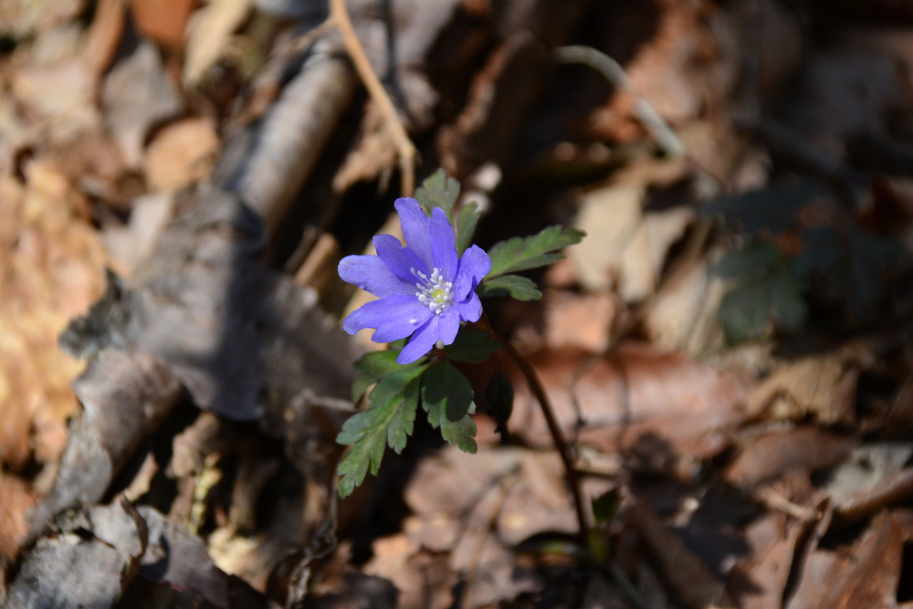 キクザキイチゲは、白い花と青みがかった花も・・・。