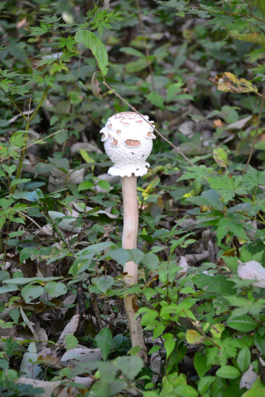 足元に、白いキノコを見つけました。