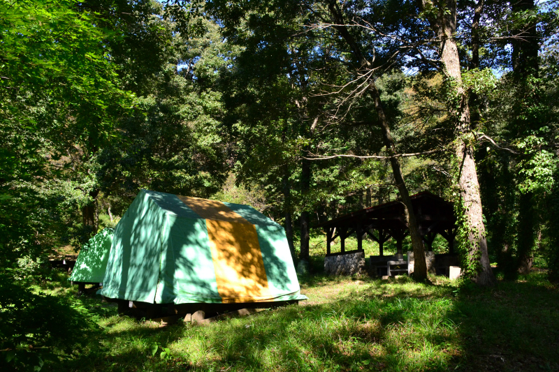 少し、山の方に進むと、テントを張れる木のスペースや、常設テントなども、あり