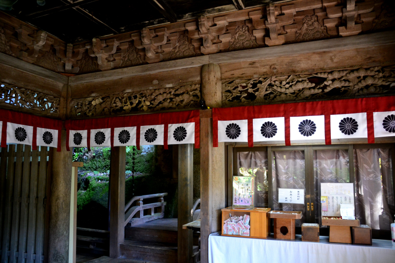 扉には浮き掘りの唐獅子と牡丹が彫られていました。内には胎蔵界大日如来が